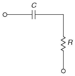 Импеданс последовательной RC цепочки ( рис. 1.97 ) показан [* в векторной форме на комплексной плоскости ] на рис. 1.98 . Её отклик, если не учитывать сдвиг фаз и брать только модули комплексных амплитуд, равен: