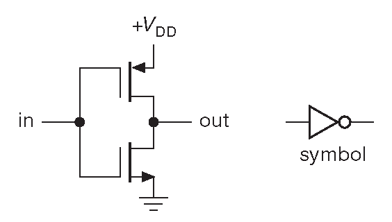 Рис. 3.90 КМОП инвертор и его схемный символ