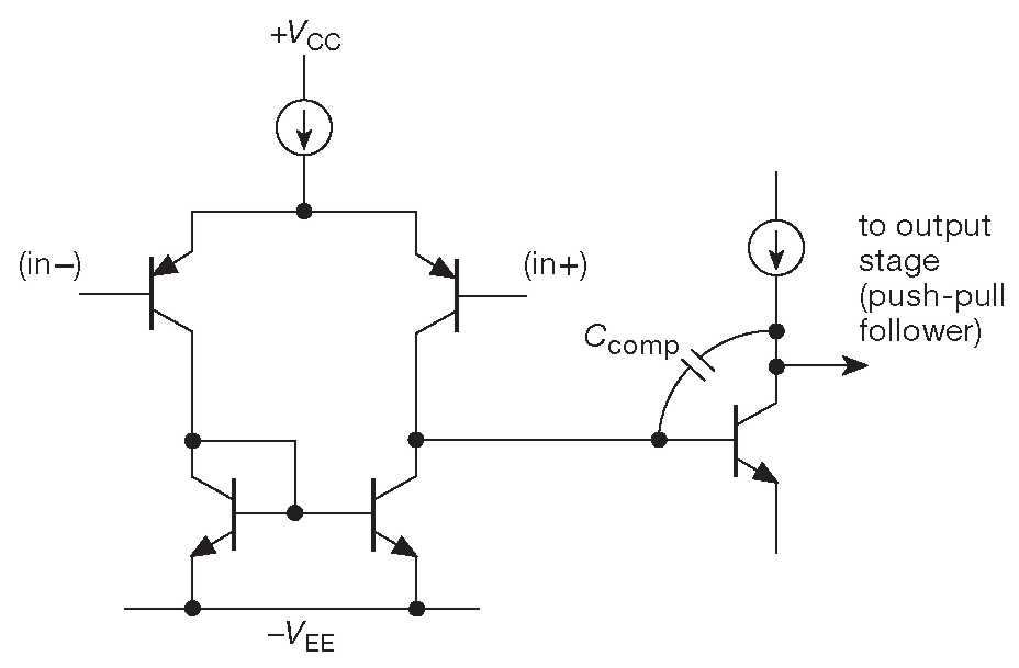 Рис. 4.100 Входной каскад классического ОУ с цепью частотной коррекции
