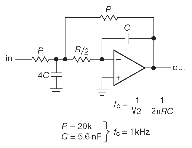 28 Предупреждение: обозначения элементов \(R\) и \( C \) в книге соответствуют таковым из оригинальной публикации Саллена и Ки, но во многих других местах, включая статьи Карки, \( C_1 \) и \( C_2\) поменяны местами. <-