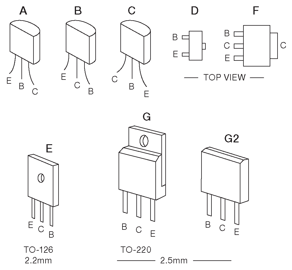 Рис.8.38 Цоколёвка биполярных транзисторов из табл. 8.1a