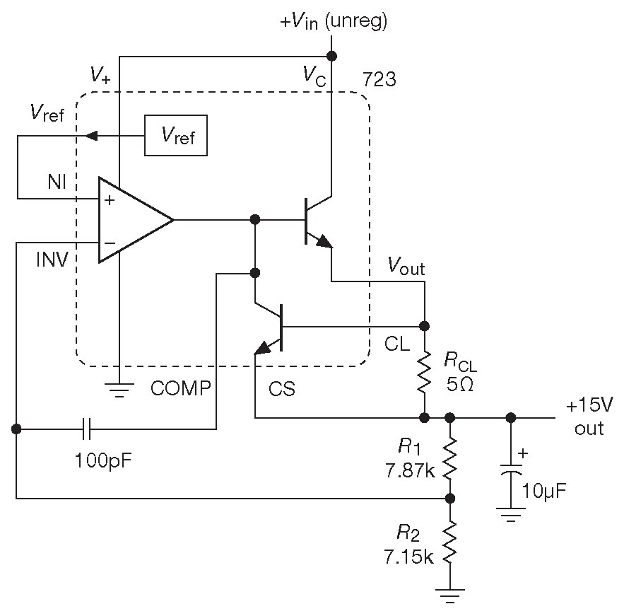 Рис. 9.3 Классический регулятор напряжения µA723
