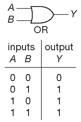 Рис. 10.4 2-входовой элемент «ИЛИ» и его таблица истинности
