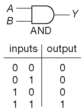 Рис. 10.5 2-входовой элемент «И» и его таблица истинности