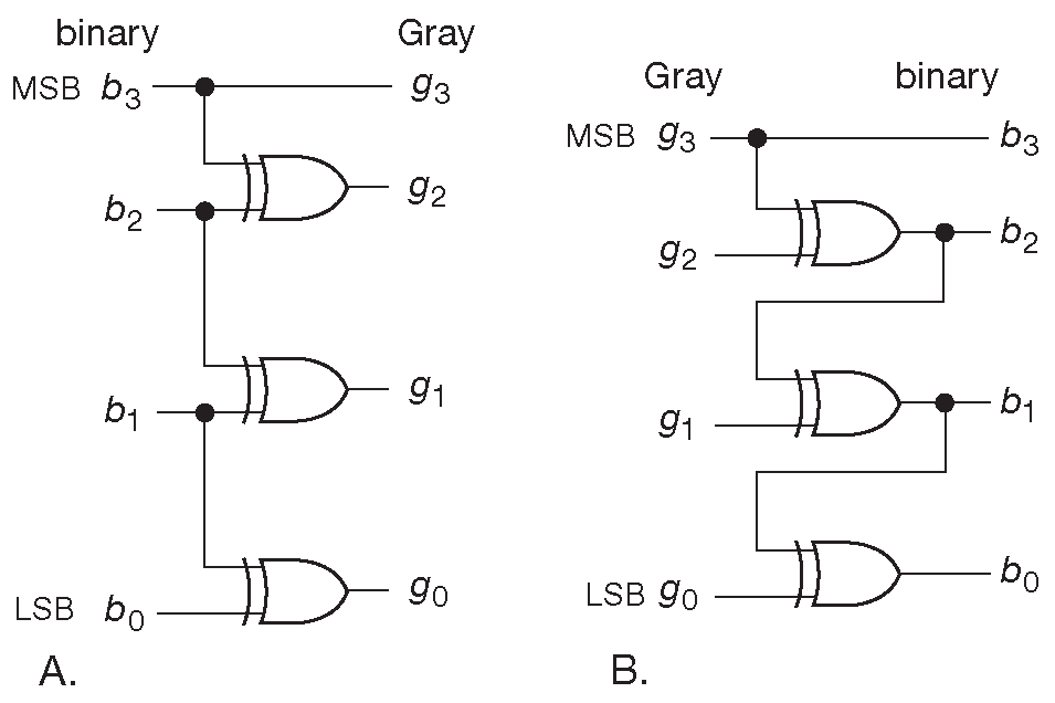 Рис. 10.10 Преобразователи параллельных кодов: двоичного в код Грея и код Грея в двоичный