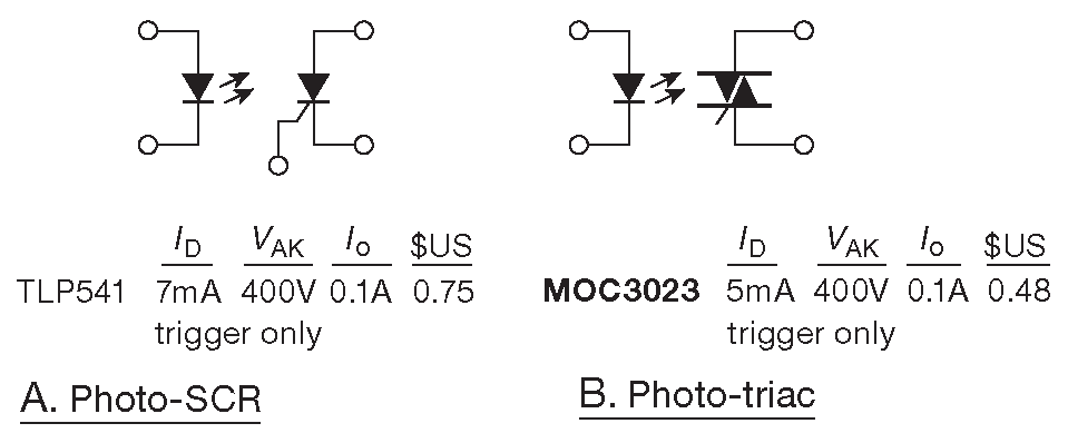 Рис. 12.92 (A) (B) Оптопары VI: твердотельные реле переменного тока с тиристором на выходе