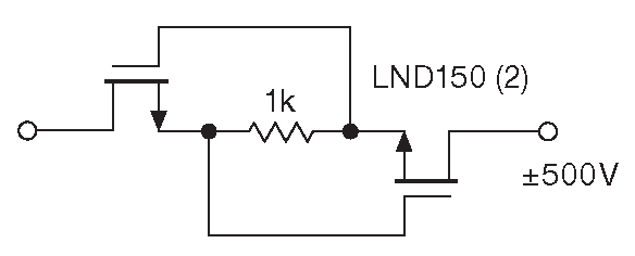 Рис. 13.77 Схема ограничения входного тока, выдерживающая входное напряжение до ±500 V