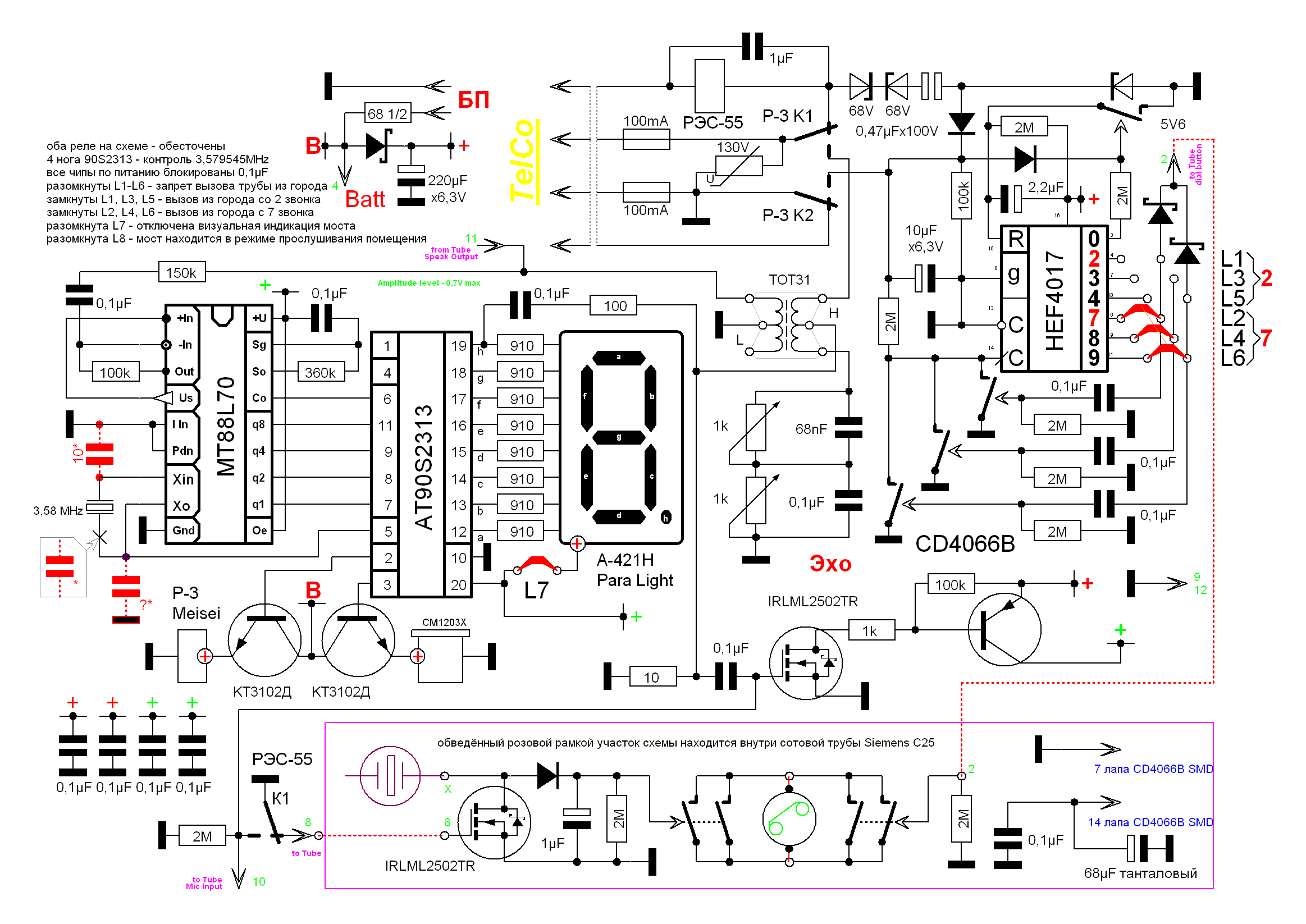 Рис. B.4 Ардуина головного мозга. Обратите внимание на схемные символы AT90 и MT88. HEF4017 тоже не подкачал