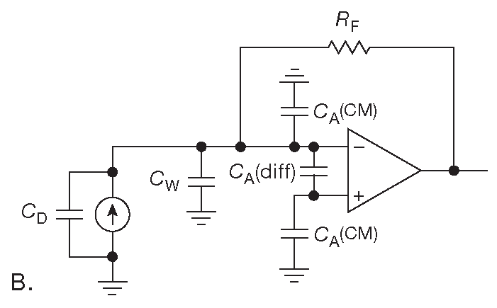 Ещё одним интересным решением является вольтодобавка , которая кратно снижает действующую ёмкость на входе TIA. Эта важная техника разбирается в §X4.3.4 [* и §8.11.9 ] .