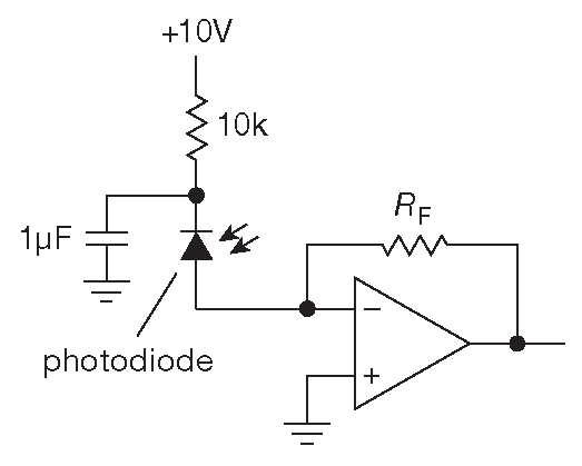19 Если фотодиод включён по схеме приёмника тока, как здесь, выход может иметь только положительный потенциал, но сама схема работает со входными токами любой полярности. <-