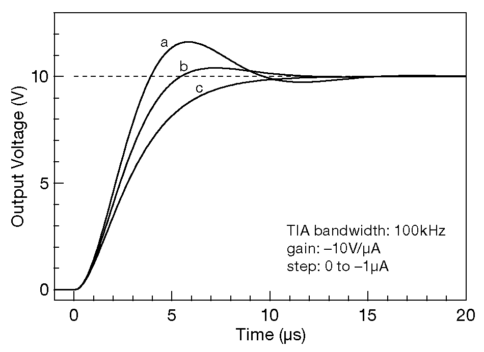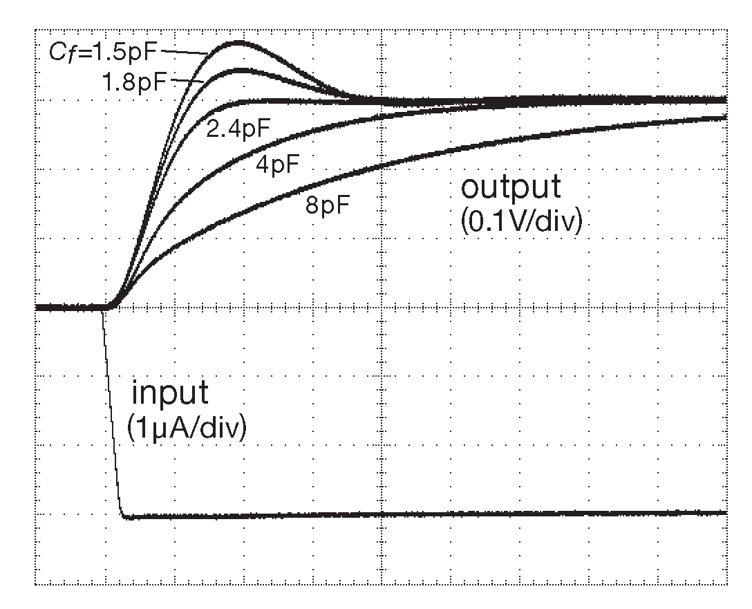 Рис. X4.21 Реакция TIA на перепад. Выбор номиналов \(C_f\) как на рис. X4.20