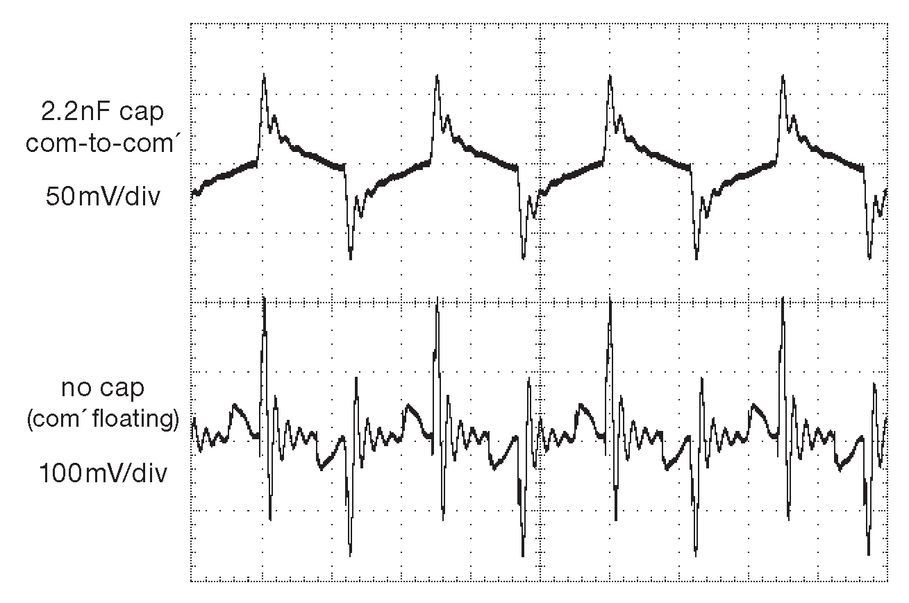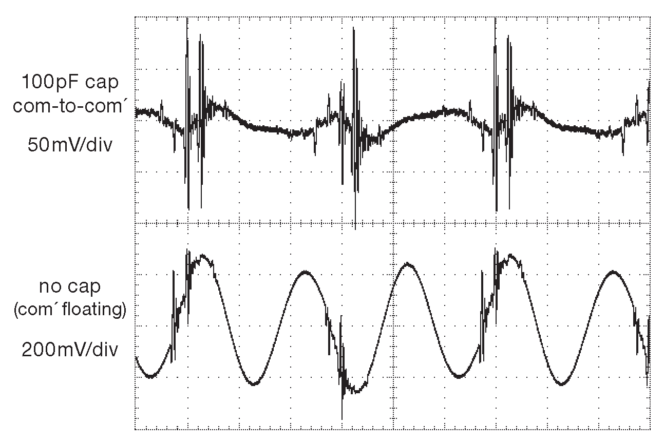 Вся конструкция, включающая симметричные повторители, синусоидальный сигнал, экранированный трансформатор и резонансный синфазный дроссель, и в самом деле очень успешно подавляет синфазную наводку от переключения. Преобразователь шумит на 60 dB меньше, чем коммерческие модули - это вам не баран чихнул . Но, чтобы лучше понимать ситуацию, имейте в виду, многие схемы относятся к синфазному шуму на своих линиях питания довольно безразлично, особенно если в конструкции предусмотрены хорошее экранирование и надёжные шины земли. Описанные здесь проблемы становятся важны только в достаточно редких ситуациях. Скажем, когда тонкие физические измерения требуют программируемых напряжений стабильных и точных до микровольтовых уровней, причём точное напряжение должно отсчитываться от другого программируемого потенциала, и всё это на конце 10-метрового кабеля.