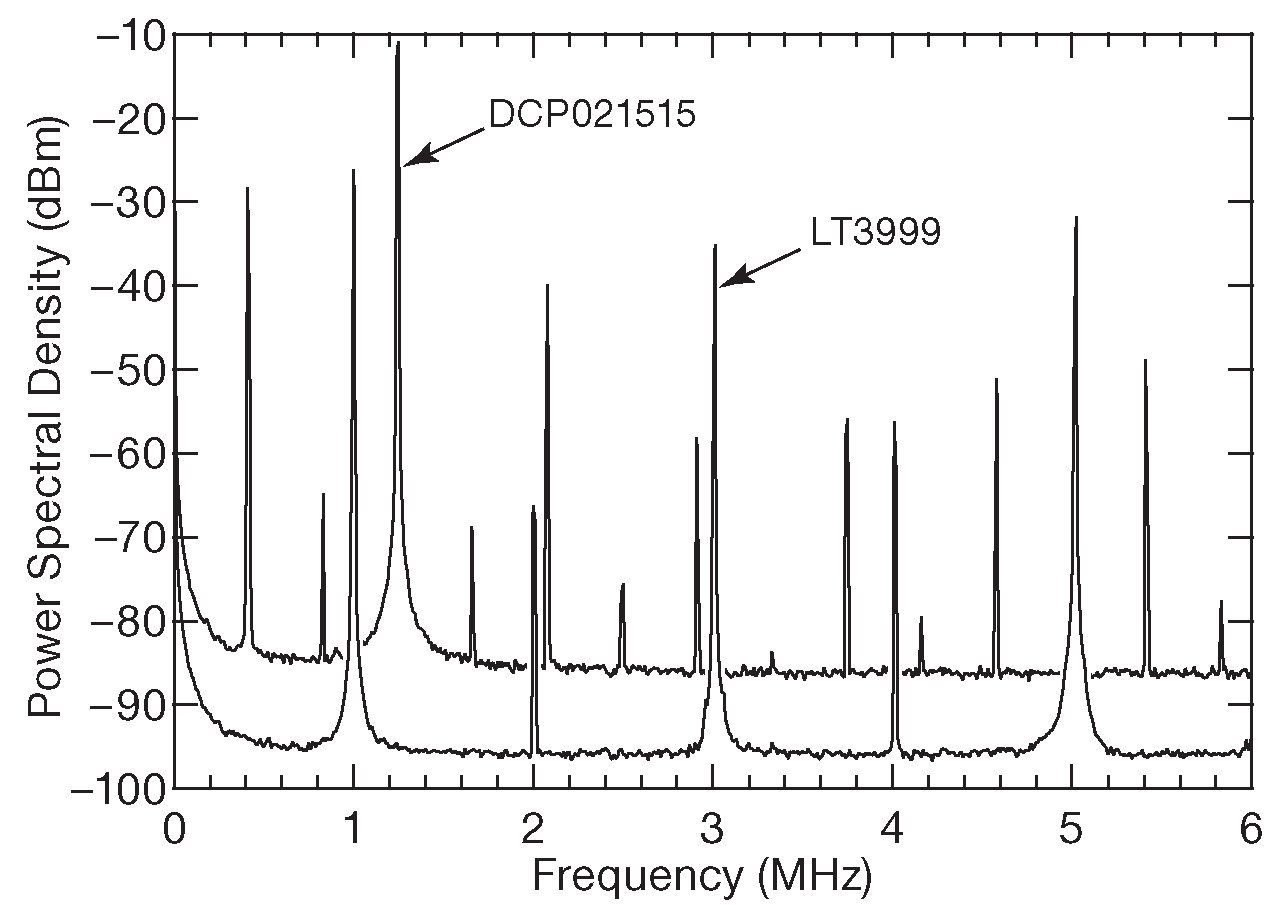 На практике шум преобразователя, наведённый на чувствительную аналоговую схему, гарантированно становится очень большой проблемой и может легко отгрызть 1000 LSB в 16-разрядном преобразователе. Такой шум имеет полосу шириной много мегагерц, что хорошо видно на рис. X9.54 . А требуется преобразователь питания, выход которого выглядит как батарея.