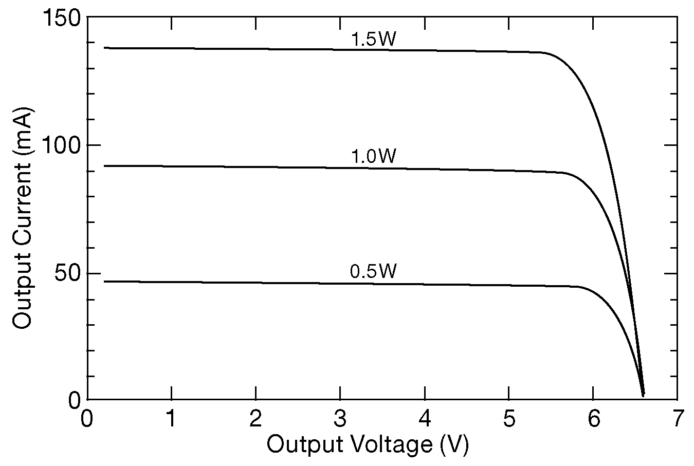 Можно приобрести уже готовые к использованию системы оптического питания ( рис. X9.93 ). Например, Lumentum L4-2486-005 может передать до 2W и состоит из лазерного диода с длиной волны 830 nm под волокно 62.5/125 μm , работающего в паре с «конвертором оптической мощности» Broadcom AFBR-POC406L. На приёмном конце можно получить 6V@120 mA 64 . На рис. X9.94 показана вольтамперная характеристика такого набора ( AFBR-POC404L не ней выдаёт сравнимую мощность 650 mW при 3V ).
